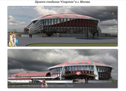 Очень хороший проект предложила Архитектурная мастерская Евгения Голышева.Чем-то почти родную "Лужу" напоминает. Правда в проекте вместимость указана в 52тыс.,а Федун говорил о 45тыс. Да и фиг с ним,хоть 45,но,мля,давайте быстрее!Собянину никто ещё не намекнул,что пора бы подписать пару бумажек из высокопоставленых болел "Спартака" в Правительстве и аппарате Президента.