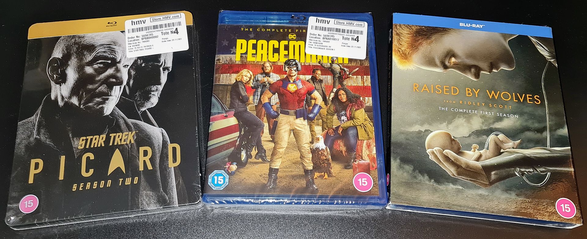 Alfaparcel #19 В этот раз самая большая посылка получилась, из всех что я получал. Сначала то что форумчане заказали: Далее всё мне. Заказы в этой и следующих двух посылках пролежали по три месяца и заканчивался бесплатный срок хранения.  Особо красивые обложки правых двух медиабуков.  Испанские диджибуки Властелина колец, Хоббитов брал ранее.  Немного Кейдж сумасшествия, и Beverly Luff Lynn 'вслепую' по рекомендациям на Ютюбе.  Сериалы, первый стил Пикарда где-то в другой посылке был.  Французские боксы с новогодних распродаж, вышло по 650р за сезон, и Austin Powers с HMV. Итого 15 изданий, 9 впервые в коллекции, остальные ради упаковки. Еще Skorry прочитал что я интересовался таким боксом для дисков, и подарил мне его, полностью оплатив заказ! Спасибо большое, он оказался очень прикольным, и доехал целым, в собственной коробочке и пупырке, хоть на Амазоне и 'пугали' фотографиями потресканных.