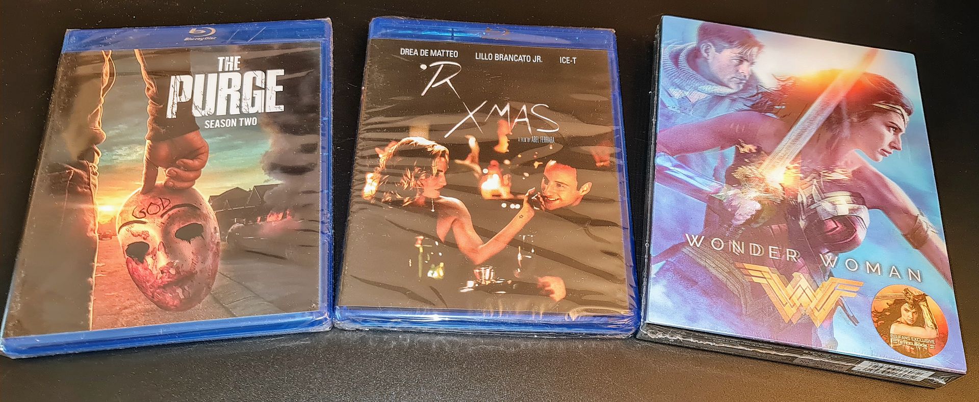 Fishisfast #23 Вторая из США через Казахстан, есть одна 'жертва', моя, но явно была такой упакована.  Матрицы, Матрицы, кому свэжие Матрицы...  Совсем в конвертике каком-то, это даже диджипаком не назовёшь. Если так все CD будут выпускать, я лучше скачивать дальше буду... Остальное мои покупки:  Классный бокс-сет, содержит Royal Warriors и Yes Madam, ну и Австралийский Янковик наконец дополз.  ArtemkaNN продал свой Блюфанс первой Wonder Woman - у меня никакого издания не было до сих пор Плюс докупил единственный недостающий Purge, второй сезон, и 'R Xmas Абеля Ферраро с Айс Ти и Дреа де Маттео (Сопранос), который чудом откопал на Shout Factory - типа сайт эксклюзив, за полные 30 долларов.  Несколько дешёвых стилбуков, все 3 за 1 R Xmas почти.  Немецкие покупки, продавленный посередине спереди фильм Гая Ричи...  Мел Гибсон мочит воров на северном полюсе, а Биггз, Заан и Блак друг друга ради ляльной Аманды Питт. Плюс расхваленная 'независимая' фантастика из Австралии. Также не из этой посылки, но Космичъ подарил мне вот такую классную модель Элеанор из Gone in 60 Seconds, запечатанную, официально лицензированную, с голограммой и всё такое! Теперь мне 'придётся' еще Форд Таурус Робокопа, и Кадиллак Ghostbusters, и ДэЛореан докупать. Итого 13 изданий, 10 впервые в коллекции, только Walking Tall, Saving Silverman, и 'R Xmas апгрейды с DVD.