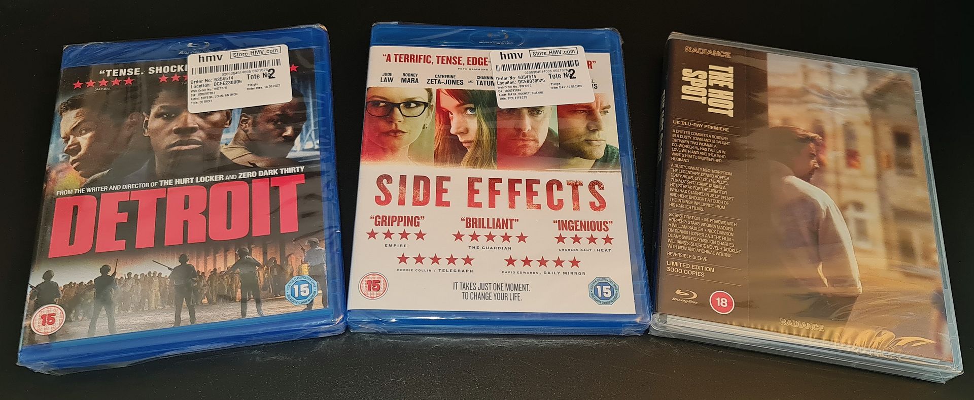 Alfaparcel #30  Один бокс мне. Остальное мне (некоторых дисков здесь нет, ушли сразу форумчанину в городе).  Первый Блю-рей нового бутик-издателя Radiance с фильмом Дэнниса Хоппера The Hot Spot с Дженнифер Коннели, и пара дешёвых дисков с HMV по £2 режиссеров Катрин Бигелоу и Стивена Содерберга.  Tomb Raider римейк подешёвке, не было на диске до сих пор.  Тоже по паре фунтов. Итого 11 изданий, 8 впервые в коллекции, и ни одного нового фильма.