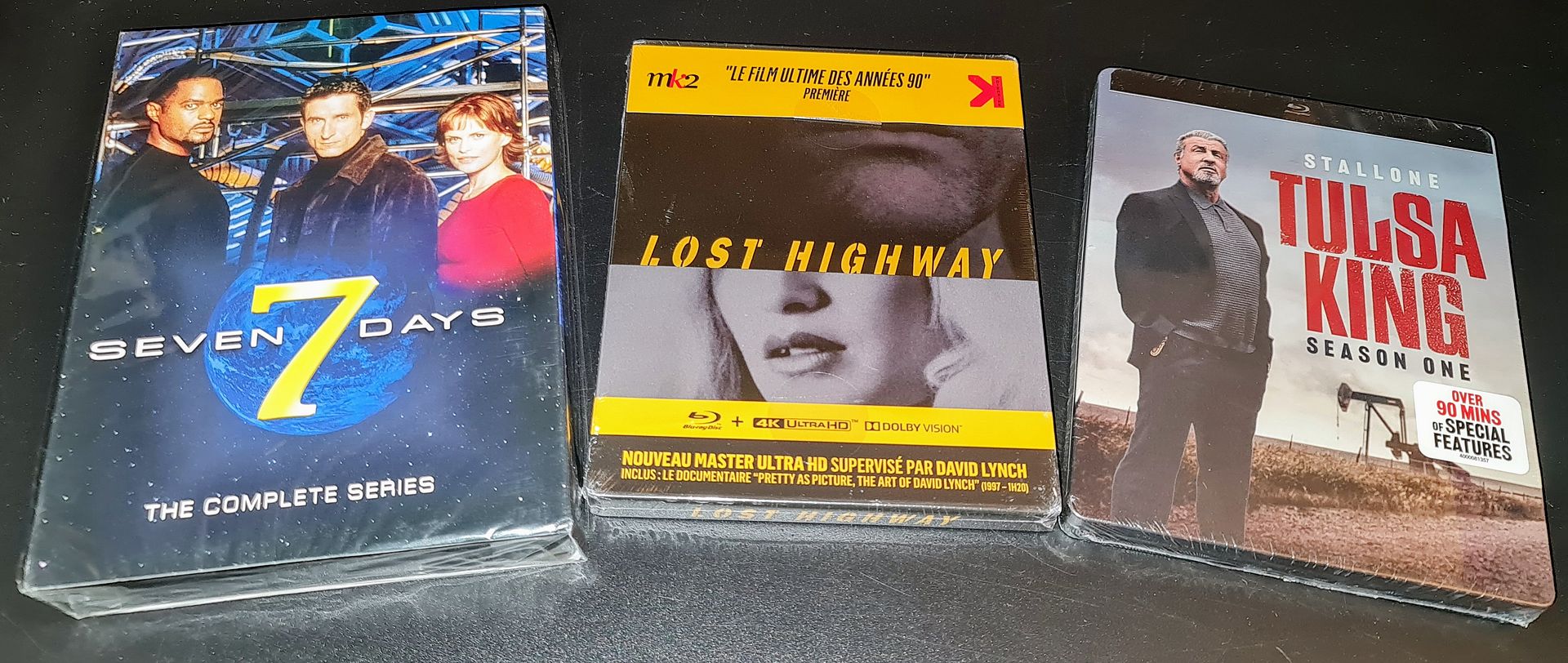 Американ-бой-уеду-с-тобой #26 В этой посылке много эксклюзивов всяких, но есть пара пострадавших - второй Рокки стил погнут с корешка, и может еще как-то, и мой Tulsa King прогнут сзади...  Первые бездисковые 'премиум' издания Манты, у меня, и вообще... Один ленти сверху мой, пришёл отдельно в другой посылке к Leon88, спасибо ему за передачу!  Vinegar Syndrome 'коллекционки', как всегда 'голые', только сами амареи внутри в плёнке. Один Showgirls мне. Остальное всё мне:  The Grave от Vinegar еще в слипе, и Walmart Шазам 2 Icon/Luxe диджипак, слип тоже без пленки, но также только несколько царапин на блестящей поверхности.  Walmart стилбуки. VHS 99 похож на Hardware, наверное им и вдохновлялся художник.  Shout, Vinegar, и Twilight эксклюзивы.  Французский стил Lost Highway, и все три сезона сериала Seven Days на DVD. Я всё еще покупаю DVD. Итого 13 изданий, 6 впервые в коллекции, остальное апгрейды формата, или ради бонусов и упаковки.