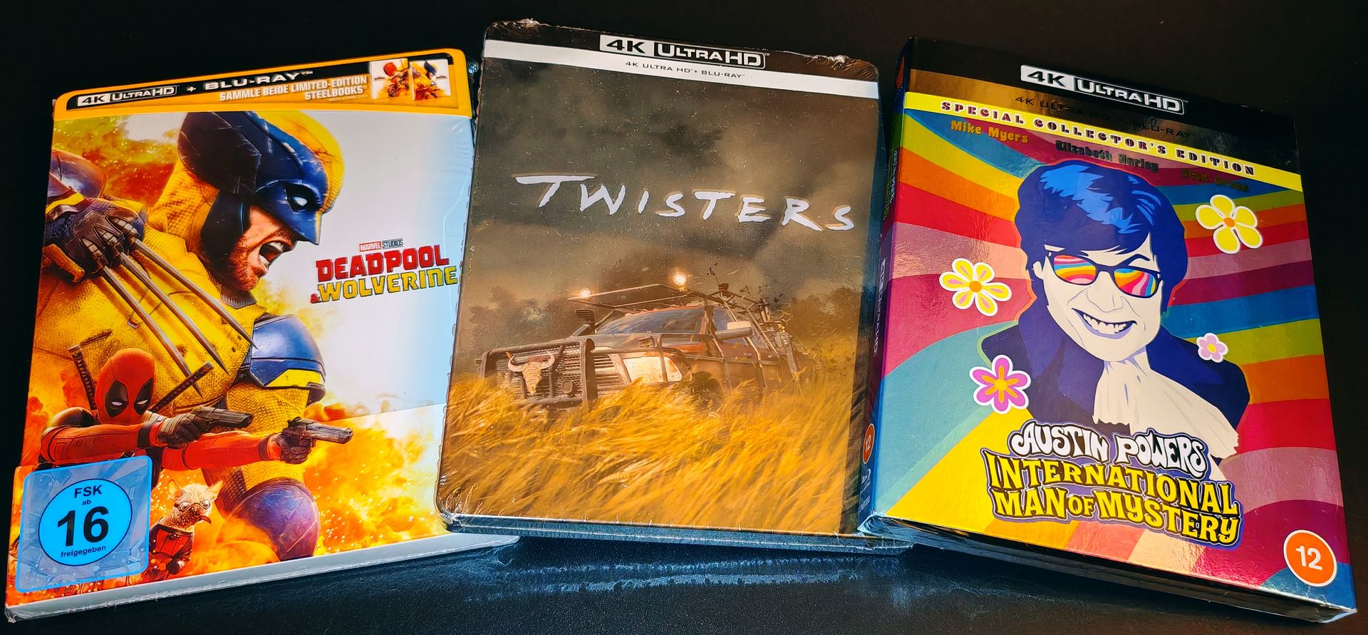 Fishisfast #58 Пока что-то придёт с через Fishisfast, где хранение до полугода, из-за накопившейся давно очереди, я уже и не помню толком что кому...  Британские номерные, и итальянские безномерные SOHO CE...  Один из этих светящихся Beetlejuice Beetlejuice мине  Красный вариант Crow римейка из Германии.  Deadpool 3 для Rusty12, Twisters этот французский, значит мне, а Остин Пауэрс не знаю, наверное мой... Остальные все мне:  Немецкие медиабуки 'Моршел Лоо'  Фгханцузкие диджипаки  Британский Borderlands и мрыканский Best Buy эксклюзив обоих 'Супа Чруперз'  Knuckles сериал можно было купить либо в UHD, либо в стилбуке но на BD... И очередной сезон испорченного Walking Dead спин-оффа для восполнения комплетизма  Подзабытая пародия на всякие секс-триллеры 90-х...  Эти оба пришли растреснутые и с порванным слипом из Англии Итого 18 наименований, 15 впервые в коллекции