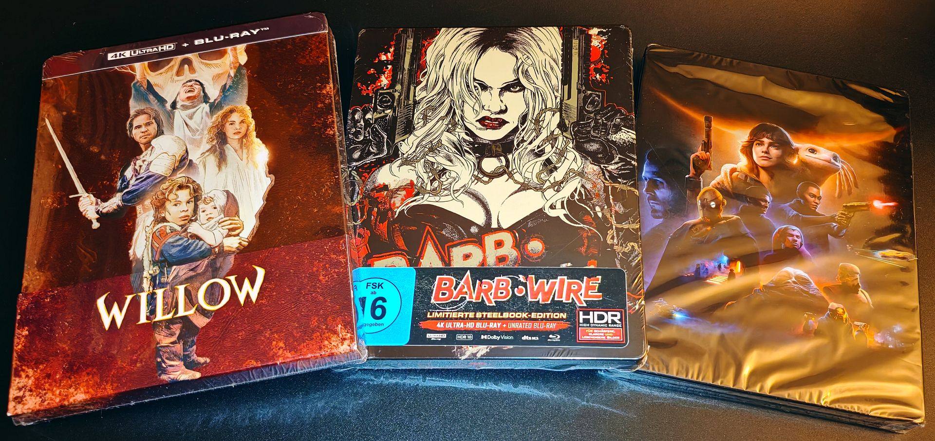 Pochtoy #15 #14 тормознула таможня - видимо подозрительно показалось количество CD... $200 Blufans издания спокойно проходят, потому что 1 штука, а юзаные CD, которые продавцы на Whatnot как мусор раздают - 1 за доллар, два, три, иногда 35 штук за $3, мол только заберите чтобы я не выкинул - это нашим таможенникам сокровища видимо какие-то. Так что пока фото следующей #15, где, между прочим, тоже прилично изданий было - более 40.  Barb Wire не мне, а справа пустой стилбук для Star Wars: Outlaws - жду пока она с $70 до 40 хотя бы опустится.  Железный бокс с тиснениями со всех сторон Doctor Collector с репликами всякой memorabilia из фильма. Они такие делали для Jurassic Park, Back to the Future, Big Lebowski, и других популярных фильмов и франшиз. Самого диска с фильмом внутри нет, только штучки дрючки всякие.  Все 9 сезонов сериала недавно выпустили в HD!  Target эксклюзив Панды 4 с артбуком, и аниме с недавней Sentai распродажи.  А дальше Блю-реи с аукционов Whatnot - там преимущественно пользованное продают, но иногда попадаются продавцы с частично или полностью новым инвентарём, так сказать, и тогда я по $1-3 за штуку беру конечно. Они потертые, потрепанные, со стикерами из каких-то распродажных магазинов, но всё таки новые и раза в 4 дешевле, чем можно на Амазоне или где-то купить. Все 20 штук ниже обошлись по цене 5 обычных десятидолларовых BD:          Итого 30 изданий, 29 впервые в коллекции.