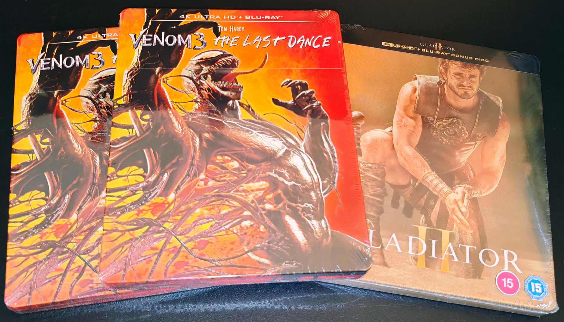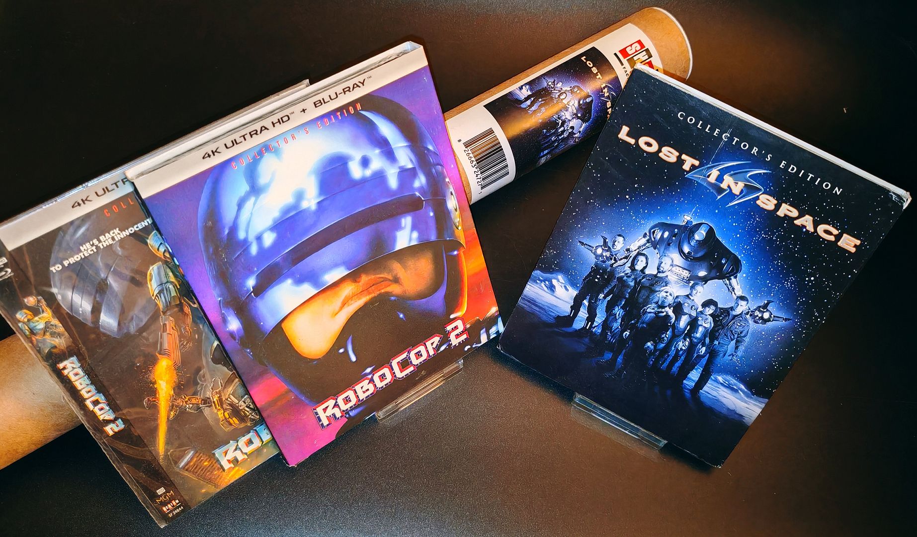 Пока посылки с Pochtoy задерживаются (из-за невместимости готовых упакованных больших паллетов на небольшие самолёты из Турции, из-за отмены их использования и перехода авиакомпании на мелкие A320, из-за оборудования глушащего дроны, влияющего именно на 'широкофьюзеляжные' A330, из-за дронов, из-за хохлов, из-за войны, из-за Пути вобщем), выставляю ранее пришедшую посылку из сЫша, где-то полгода назад... Чтобы 'присвоить' ей общий 'нумер на рукаве', складываю 58 полученных с Alfaparcel, 49 c Pochtoy, 64 c Fishisfast, и 6 с Shopogolic (уже не считаю со CDEK из Гонконга и иные отдельные), и получаем: Объединенная посылка #178  Shout Factory с их эксклюзивными постерами, два любимых фильма детства и 'тинейджерства'...  К Робокопу экстра слип, к Lost in Space постер  Walmart эксклюзивы    Не собирался покупать эту уже третью серию стилбуков к Underworld, но они стали дешёвыми, и подвернулись на иБее '2 по цене 1', буквально по 550р. Однако это только первые 4 – именно к пятой части он почему-то взвинтился до $200... Итого 14 изданий, и только 4 впервые в коллекции.