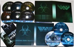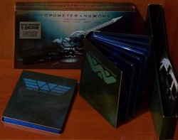 Довольно симпатичный внешне металлизированный бокс, примерно на 2-3 мм. выше BD-амарея. Плёнку изначально снимать не стал, посему фото задника вышло не совсем 'так как надо'. Ну и, - можно напечатать фото-артов к представленным фильмам и вместо 'вставыша' самолично дополнить это издание макулатурой, забрав так сказать пустоту).