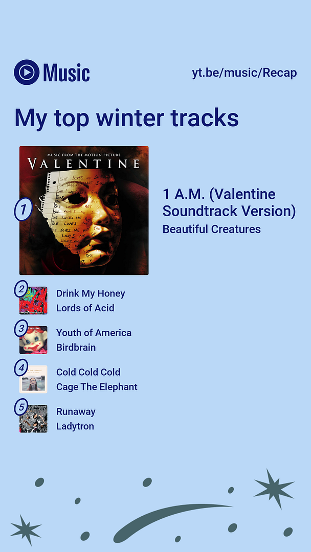 Забыл вовремя выставить очередную статистику YouTube Music, отслеживающую что я слушал зимой 22-23: