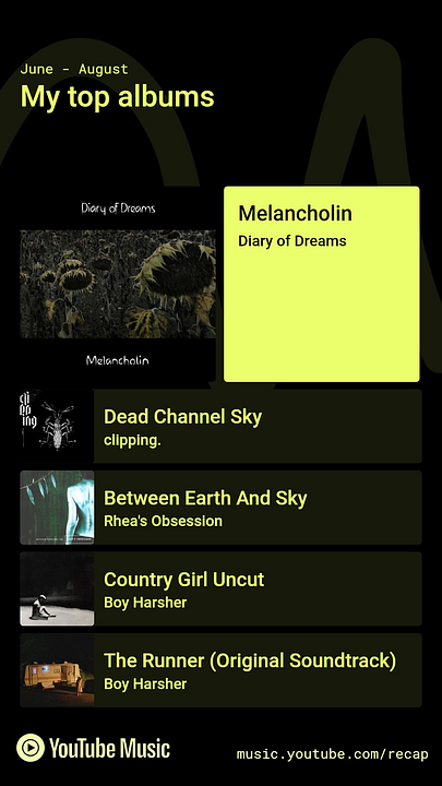 Забыл запостить летнюю статистику выданную YouTube Music: