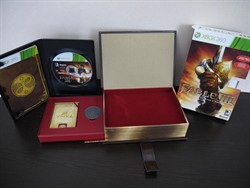 Fable III. Limited Collector's Edition (Xbox 360) В полный комплект Fable III Limited Collector's Edition для Xbox 360 входит: DVD-диск с игрой. (Игра на англ. с рус. субтитрами) Руководство пользователя (Мануал цветной и довольно таки интересный, на рус.) Внешне упаковка Limited Collector's Edition выполнена в виде книги из Fable III. Игральные карты Fable III: В этой колоде карт, созданной студией Lionhead изображены герои, члены королевской семьи, мятежники и злодеи со всего Альбиона. Знак Гильдии: Как и в самой игре, у Знака будет добрая сторона (синяя) и злая (красная). + различные DLC