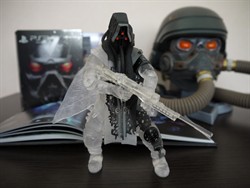 Killzone 3 Helghast Edition (PS3) Издание для России. Полностью переведенная, на русский язык, игра и мануал Коллекционное издание "Killzone 3" в металлической упаковке Steelbook, сверху пластиковый слипкейс; Модель хелгастского шлема выполнен в виде подставки для игры и артбука. Арт-бук - 100-страничный альбом эскизов к "Killzone 3". На каждой странице нанесены прозрачные символы(на фото их наверно не видно) Фигурка снайпера-хелгаста (DC Unlimited) подвижная. Крутятся и шевелятся и ноги и руки (в разумных пределах). Выполнена фигурка очень качествено!