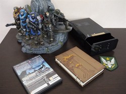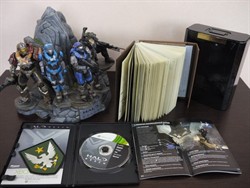 Halo Reach Legendary Edition (Xbox 360) Ограниченное издание. Для России их (по слухам) всего штук 100 было! Игра на англ. (без перевода). Только мануал на русском (цветной). Все остальное также на англ. Коробка, конечно поменьше, чем Crysis 2, но тоже очень большая! Сам диск и вся бумажная атрибутика лежат в красивой коробке ONI black box. Арт бук выполнен в виде личного журнала доктора Холсии. Другие документами: листовки, карточки бойцов, карта, всякие записки...вложены, видимо для придания изданию большей атмосферности. Обелиск с игрушечными модельками Noble Team (созданные в McFarlane Toys) литой. К сожалению фигурки не подвижны и с обелиска не снимаются. Но смотрятся очень классно!