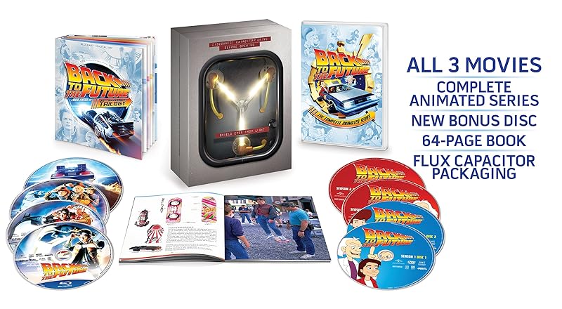 А между тем близится 21 октября 2015 года, тот самый день, когда Марти и Док оказались в будущем. Для Universal очередной повод перевыпустить трилогию " Назад в будущее". Диски с фильмом останутся на 99% те же самые (то бишь, мастеринг картинки с DNR + решарпингом), но в Лимитированном Коллекционном Издании™ за 99 долл. добавят а) еще один бонусный диск, б) мультсериал, ц) 64-страничный буклет и д) модель потокового накопителя с работающими лампочками. Но британский тин-бокс 2010 года все равно был лучше. PS: Будет также простой вариант только с фильмами и бонусным диском. PPS: я же в этот день пойду на трипл-фичер в кинотеатр. :)