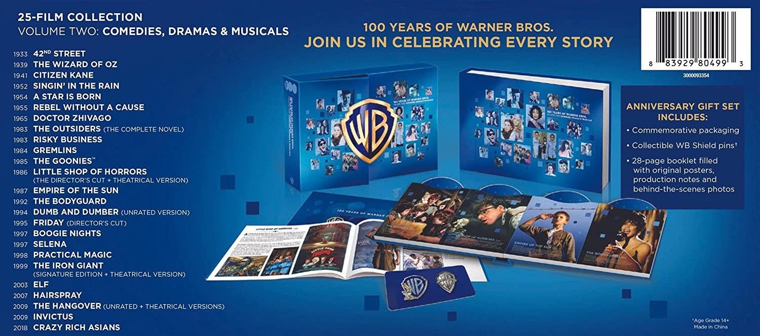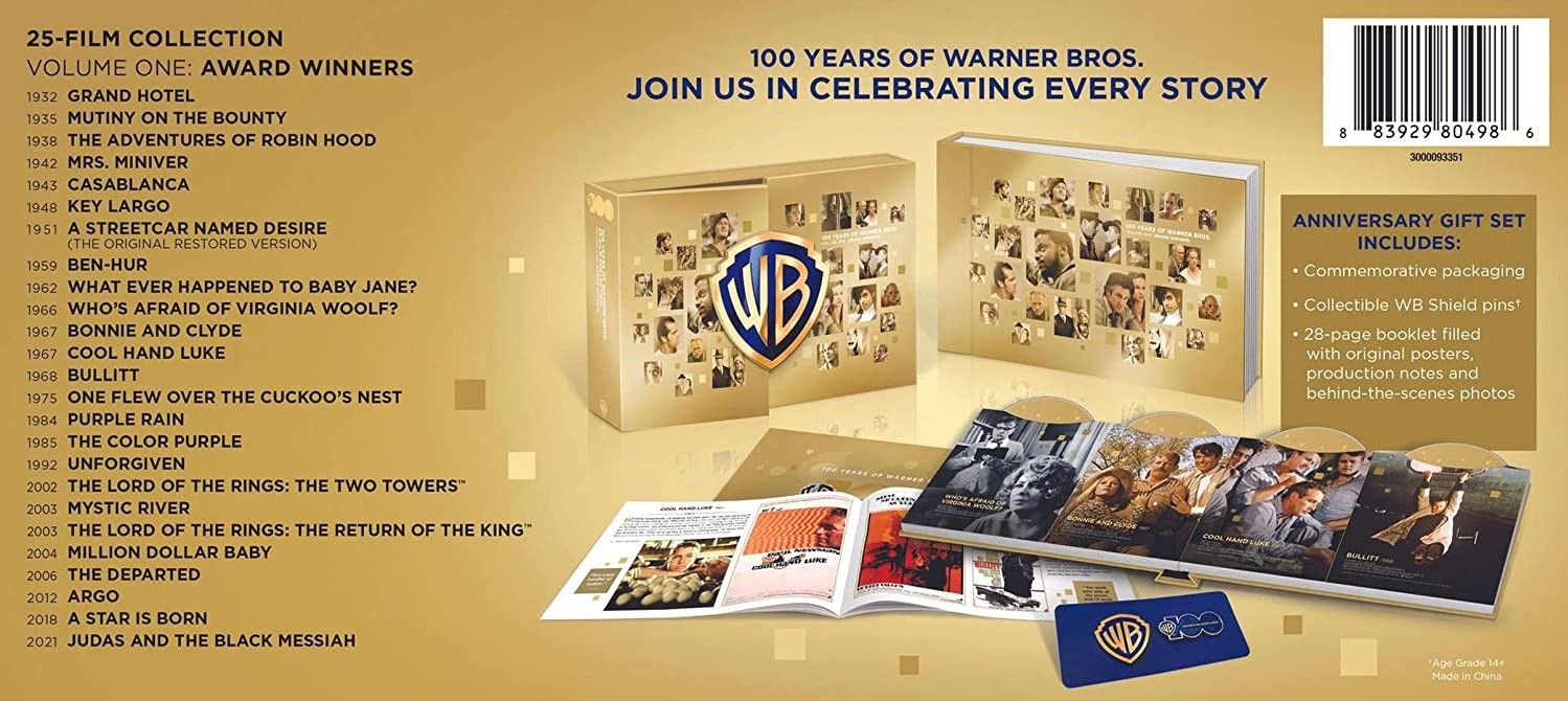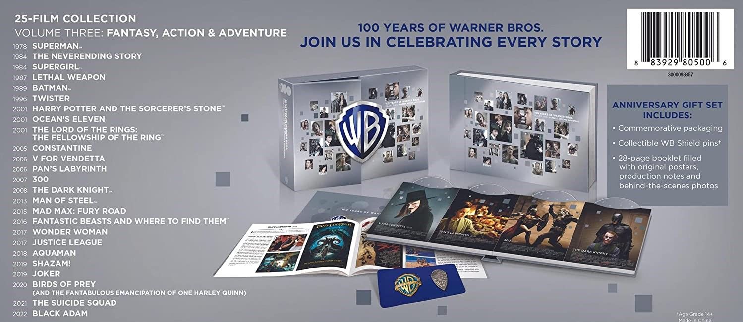 Кроме 30-дискового UHD бокса в Англии (и четырех 5-дисковых наборов поменьше), Warner разродились еще четырьмя 25-дисковыми Блю-рей диджибукищами в таком же стиле, только эти для США, и 'растеребонькали' 8 значков по 2 в каждый.     Опять странный набор фильмов, опять преимущественно те же фильмы, что они по 10 раз выпускают, опять без бонусных дисков, если таковые были, и опять непонятно для кого. Должны бы были всё это до UHD тогда апгрейднуть, и уж еще больше тематических боксов наделать - где 4, там и 8 и 10 можно, чтобы ужасы были отдельно от фантастики и криминала.