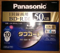 BD-R Panasonic LM-BRS25LT50 25Gb 1-4x новые запечатанные BLU-RAY диски однократной записи BD-R PANASONIC LM-BRS25LT50 25Gb 1-4x Printable .Диски поддерживают скорость записи 1-4x и имеют защитное покрытие Hard Coat. Этот слой защищает диск от появления отпечатков пальцев, пыли, царапин, статического электричества и влаги. Для производства Blu-Ray дисков Panasonic использует уникальный неорганический материал и инновационную структуру диска inorganic (phase-change) recording layers, которые создают более прочные слои записи и сводят к минимуму ошибки считывания при воздействии температуры и влажности. Эти технологии являются ключом к достижению долгого хранения архивов.Диски имеют срок жизни более чем 50 лет .Сделано в Японии. В упаковке 50 дисков. Серия 2012 года.Цена 10000 рублей BD-R Panasonic 50Gb LM-BR50LT10Nновые запечатанные BLU-RAY диски однократной записи BD-R 50Gb LM-BR50LT10N Printable .Диски поддерживают скорость записи 1-4x и имеют защитное покрытие Hard Coat. Этот слой защищает диск от появления отпечатков пальцев, пыли, царапин, статического электричества и влаги. Для производства Blu-Ray дисков Panasonic использует уникальный неорганический материал и инновационную структуру диска inorganic (phase-change) recording layers, которые создают более прочные слои записи и сводят к минимуму ошибки считывания при воздействии температуры и влажности. Эти технологии являются ключом к достижению долгого хранения архивов.Диски имеют срок жизни более чем 50 лет .Сделано в Японии. В упаковке 10 дисков в пластиковых слим-боксах + салфетка. Серия 2012 года.Цена 5000 рублей
