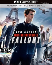 Миссия невыполнима: Последствия/ Mission: Impossible Fallout Paramount/ND, релиз – декабрь 2018 г BD 100, HDR10 REC2020 Dolby Vision Сигнатура SL148727UV, Theatrical (with IMAX Portions) Звук: Английский Dolby Atmos, Чешский, Немецкий, Венгерский, Итальянский, Польский (синхр), Русский, Турецкий DD Surround 5.1 AC3. Isolated Score Track - DD Surround 5.1 AC3, 3-и дорожки с комментариями. Титры: English, Arabic,Czech,German,Greek,Hebrew,Hungarian,Icelandic,Italian,Polish,Portuguese - European, Romanian, Russian, Slovakian, Turkish, Ukrainian, English - United States (Forced),Czech (Forced),German (Forced),Hungarian (Forced),Italian (Forced),Polish (Forced),Russian (Forced),Turkish (Forced),English - United States (Commentary) #1, German (Commentary) #1, Italian (Commentary) #1, English - United States (Commentary) #2, German (Commentary) #2, Italian (Commentary) #2, English - United States (Commentary) #3, German (Commentary) #3, Italian (Commentary) #3 PS Также в издании будет отдельный блю-рей диск с доп. материалами, красочный буклет