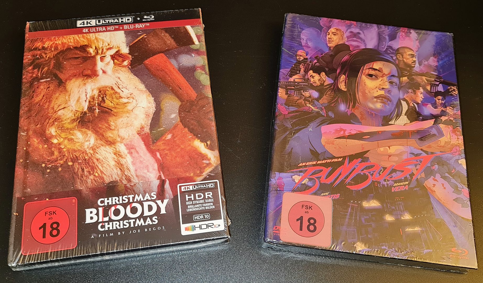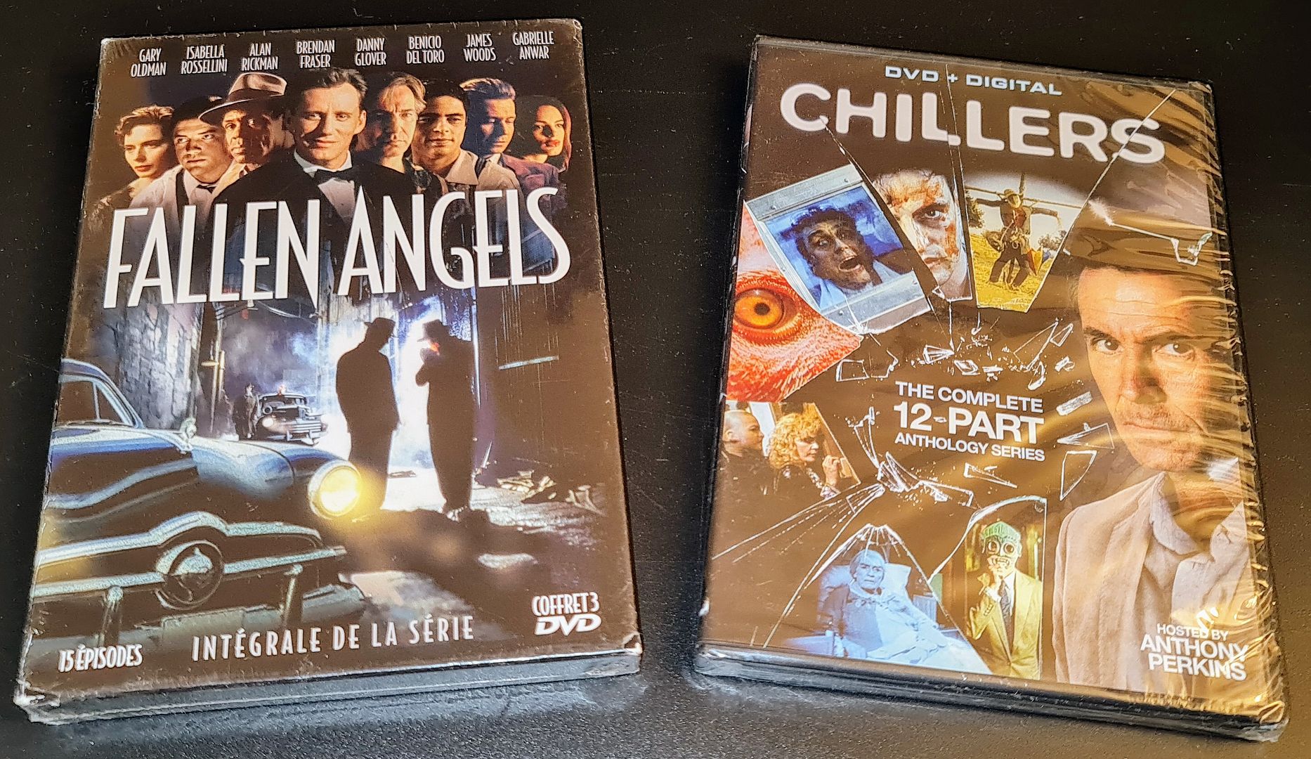 Американская #27 Тут большинство моих дисков оказалось, некоторые там давно лежали.  Я отследил где чей заказ Пилота по очереди запросов, этот в потертом но слипе форумчанину Tol, следующий пришёл уже без слипа. Третий еще в дороге. Остальное всё мне.  Пара лишних стилов с французского Fnac.  Новый фильм Джо Бегоса (Bliss, VFW), и бешеный Филиппинский фильм BuyBust, который верно назвали скрещением Raid и Sicario. Куплен исключительно из-за медиабука, сам диск только с немецким переводом, у меня просто есть американский Блю-рей.  Слева как раз случай о котором недавно говорили в 'Принципах коллекционирования' про издания с черти какими названиями - это Diary of a Hitman '91 с Шэрон Стоун. И третий Реаниматор.  Одни из самых красивых медиабуков с как раз таким артом, как я люблю!  Пара КиноЛорбер изданий и новый фильм Нила Маршалла в рельефном слипе.  Пара фаворитов ранних 00-х впервые на Блю-рее (In the Cut ранее выходил в Германии и в сборниках, впервые отдельно в США).  Новый сборник любимых Багз Банни, Сильвестра, и Уайл И. Койоти, а Dragon фильмы не стал покупать в стилбуках, такого дёшевого всё-в-одном достаточно. Лучше In the Cut голый еще раз купить...  Говорят UHD диск в немецком Plane не очень, а с таким фильмом выпущенным разными компаниями в разных странах, у всех свой, и во Франции или США лучше, по крайней мере звук. Но стилбук был только в Германии.  Третий сезон His Dark Materials в Англии в диджипаке так и не выпустили, так что амарей было неважно где брать.  Еще два сериала-антологии на DVD, ужастиковый с Пёркинсом, и нуарный Fallen Angels. Последний наконец-то полностью издан во Франции. Ранее выходили только некоторые эпизоды в Англии и Австралии под названием Perfect Crimes, и лет 16 назад покупал на трех российских DVD второй сезон:  Вот про него тот пост. Итого 23 издания, 14 впервые в коллекции.