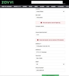 Feanor Если в строчке House Name/Number указать 15 Boulden Circle, тогда в Address Line 1 что - только Ste 100 ? ZIP 19726-9004 тоже не прокатывает. На сайте Зави американском пишет, что должен быть зип длиной 5 цифр. Если повставлять все, как они (фиши) рекомендуют, то нифига не получится на некоторых сайтах заполнить адрес доставки.