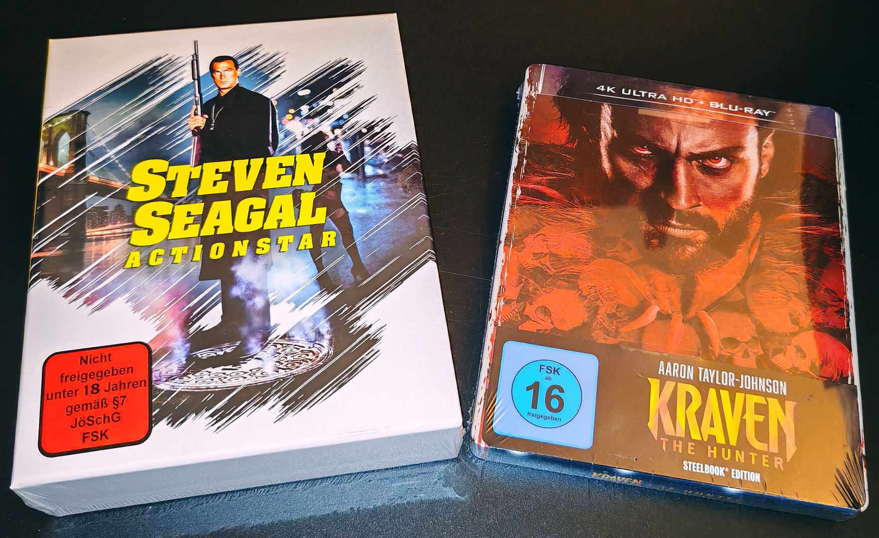 Pochtoy #77 (215) Так как недавно получил пару посылок только с тубусами с постерами, которые не вскрывал и не фоткал, чтобы соответствовать 'внутреннему' нумерованию приходящих посылок, 2 номера пропускаю, и эта уже 'сразу' 77-я. Вся эта состоит из большого заказа с Австрийского Medienversandt магазина:  Эти были заказаны до появления корейских с карточками, так что будет лишний на продажу  Один из самых лучших фильмов этого года в простом стилбуке, но с тисненым названием  Эти не мне, Law Abiding Citizen с UHD диском  Creep 2004 года с Франкой Потенте, и другой Law Abiding Citizen c 'мягким' медиабуком – кстати мы заказывали эти до того, как в сЫша анонсировали UHD стилбук, нг оказалось не зря, так как в нём в UHD только театральная версия, а в этих немецких режиссёрская.  Любимых фильм Lola Rennt, и металлизированный медиабук Requiem for a Dream, выглядящий вживую красиво...  77 посылка, 7 фото (не специально), и номер медиабука достался такой!  Сигал бокс с несколькими довольно редкими во всём мире для Блю-реев фильмами, включает Hard to Kill, Out for Justice, On Deadly Ground, Glimmer Man и Fire Down Below Итого мне 6 изданий, только Companion и некоторые фильмы Сигала впервые в коллекции.