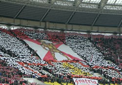 Это надо видеть в "живую"![sm=em62.gif]Подобные акции устраиваются вовремя выхода игроков на поле-весь матч фаны не держат банеры.[sm=9.gif]