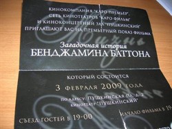 Не совсем билет, но всё же пропуск в кинотеатр, т.е. приглашение на премьеру.