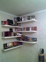 прикрутил таки полки под часть дисков... обычные амареи двд, хддвд, блюрей и всяческие сериалы и российские коллекционки оставил вне кадра - пока все ужасно свалено в кучи и коробки... все фото можно увидеть здесь...