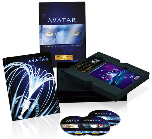 AVATAR Extended Collection’s Edition: 3-Disc Collector’s Edition Blu-ray: Disc One · Original Theatrical Version · Special Edition Re-Release · Collector’s Extended Cut o 16 more minutes and exclusive alternate opening Family Audio Track (All Objectionable Language Removed) · Original Theatrical Release · Special Edition Re-release Disc Two · “Capturing Avatar“ An in-depth feature length documentary with James Cameron, Jon Landau and cast and crew · Deleted Scenes – including over 45 minutes of new never-before-seen deleted scenes · Production Materials Disc Three · Open “Pandora’s Box” and go deeper into the filmmaker process · Interactive Scene Deconstruction: Explore the various stages of production through 3 different viewing modes · Production Shorts: 17 featurettes covering performance capture, scoring the film, 3D fusion camera, stunts and much more · Avatar Archives including original sсriрtment, 300 page screenplay and the extensive Pandorapedia · BD-live Portal with additional bonus materials Дождались. http://amzn.to/9hILH1