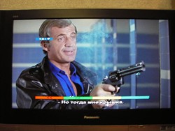 Сделать, иначе не поверим Сделал. Извините за качество, фотографировал только-что, без вспышки (что бы не бликовало), с рук, поэтому изображение слегка смазанное. На фотике поставил минимальное разрешение, изображение выставлено "как есть", без всяких Фотошопов. Для идентификации диска вывел субтитры. Во избежания обвинений в применении режимов адаптации изображения (типа Zoom1, Zoom2, Zoom3 и т.д.) вывел на экран индикацию режима изображения. Можете смотреть результат. Единственное, что по результатам эксперимента приходит в голову - способ соединения может играть какую-либо роль?