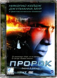 NEXT (ПРОРОК) Год: 2007 Студия: Initial Entertainment Group Режиссёр: Ли Тамахори Дистрибьютор: СР Диджитал Количество дисков: 1 Формат изображения: Anamorphic Widescreen 2.35:1 PAL Звуковые дорожки: русский (дубляж) Dolby Digital 5.1, русский (дубляж) DTS, английский Dolby Digital 5.1 Субтитры: русские Меню: анимированое, озвученое Продолжительность: 92 мин. Дополнения: - Каталог - Смотрите на DVD - Создатели и исполнители Упаковка: jewel