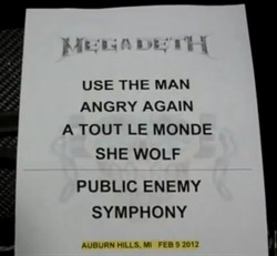 MEGADETH отыграли небольшое акустическое выступление перед 50 счастливчиками, выбранными на радиостанции WRIF 101.1 FM: [video]43EM-eQBN8w[/video] Cет-лист выступления был следующим: [image]local://19990/47C3CAA467B14CA99266EB26BF74B35F.jpg[/image]