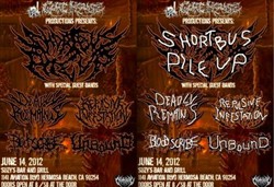 прикол. Кто сможет самостоятельно прочитать названия этих хэви-метал групп от одного очень креативного дизайнера с Южной Калифорнии (?):