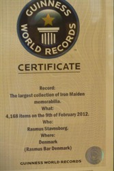 [sm=ay.gif]Самая большая подборка памятных вещей IRON MAIDEN. Видео, рассказывающее о самой большой подборке памятных вещей IRON MAIDEN, которая официально занесена в Книгу рекордов Гиннесса, доступно для просмотра: [video]H2SqT-m6kTk[/video] Коллекция была представлена на обозрение публике 27 октября на Rockmässan в Malmö, Sweden. Фото доступны по этому адресу. Ей владеет Rasmus Stavnsborg из Karlslunde, Denmark, который начал слушать группу с 1981 года в возрасте восьми лет и спустя пару лет начал собирать памятные вещи, связанные с коллективом. Сейчас его коллекция насчитывает 4 168 предметов и большинство из них находится в подвале его дома, который назван Iron Maiden Bar. Rasmus посетил множество концертов группы по всему свету, включая шоу в Японии, Индии, России, Перу и Дубае.