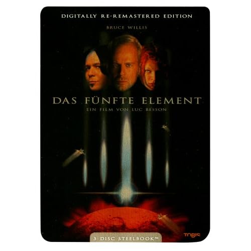 Вот общий список бонусов: Диск 1: Аудиокомментарий с командой спецэффектов Диск 2: (такой же, как на предыдущем издании) Три документальных фильма: - "Making of "Пятого элемента"" - "В поисках "Пятого элемента" - "Элементы" Репортаж с премьеры в Каннах в 1997 году Маркетинг: разные трейлеры и тизеры Био- и фильмографии Диск 3: Документальный фильм "Открытие" (48 минут) 4 фичи о спецэффектах (5 минут) А вот сравнение кадров: http://forum.cinefacts.de/showpost.php?p=4938860&postcount=211 Ах да, здесь его можно купить: Das Fünfte Element - 3 DVD Steelbook Re-Remastered 14,95 EUR на Amazon.de