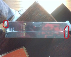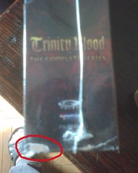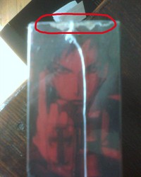 Получил сегодня посылку с "Амазона". И обнаружил, что по углам на ребре бокса Trinity Blood бумага имеет рваные края. Этот дефект явно не заслуга нашей почты, так как всё аккуратно запаковано и упаковочная плёнка на коробке цела. Создаётся такое чувство, что бокс был дефективный, его подклеили малость (не все обрывки сохранились, и теперь это смотрится очень уродливо) и запаяли в полиэтилен. В общем, жутеко расстроен и думаю написать им в саппорт. Пожалуйста, кто хорошо владеет английским, помогите обрисовать проблему, чтобы амеры меня поняли. Вот фотки (прикреплены, сорри за говнотелефонокачество). Дайте, плиз, ссылку, где упоминалось, или подскажите, как отчистить остатки клея со стилбука от старой защитной липучки. Edit: Пожалуйста не надо выставлять такие громадные фотки, тем более такого качества. Не больше 150кб и 900 пискелей в ширину.