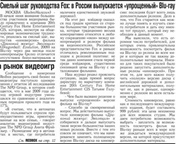 ORIGINAL: tch Видимо провели экстраполяцию продаж ДВД. Т.е. директор по маркетингу Фокс СНГ может быть настолько некомпетентным специалистом?