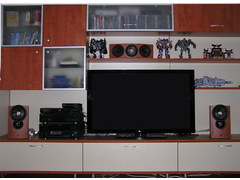 Телевизор: Плазма Pioneer LX-508D Ресивер: Yamaha RX-3800 Акустика: Kef iQ3 (фронт), Kef iQ6с (центр), Kef iQ1 (тылы). Саб: Velodyne CHT-10Q DVD плеер: Yamaha S-2700 BD плеер: Sony BDP-S350 Система уже немного древняя, тем не менее есть все необходимое. Пока хватает.
