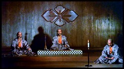 Тень воина (Кагэмуся) / Kagemusha (1980, 2xDVD R5, 20th Century Fox, Литва) “Копия имеет смысл, когда есть оригинал. Когда оригинала нет, что ждет его копию?” [image]local://37610/90F38AE09F2E49CA897D4F9498CA6130.jpg[/image] [image]local://37610/15D26D64B6724180A2A6613534967404.jpg[/image] ДИСК. Дистрибьютор: 20th Century Fox Региональный код: 2, 5 (Disc One); 2, 4, 5 (Disc Two) Формат: DVD9 (7,21 Гб) + DVD5 (4,4 Гб) Формат изображения: PAL, Anamorphic Widescreen 16:9 (1.78:1) Звуковые дорожки: Японский Dolby Digital 4.0 (384 Кбс) Русский Закадровый перевод Dolby Digital 2.0 (192 Кбс) Турецкий Dolby Digital 2.0 (192 Кбс) Английский Dolby Digital 2.0 (192 Кбс) - комментарий и Disc Two Субтитры: русские, английские, болгарские, сербо-хорватские, эстонские, латышские, литовские, румынские, словенские, турецкие (Disc One); английские, голландские, французские, немецкие, греческие, итальянские, польские, португальские, испанские (Disc Two). [image]local://37610/E818B38B518842E4BD952C3E043CFCB8.jpg[/image] Дополнительные материалы (на русский язык не переведены): Disc One Audio commentary by Kurosawa scholar Stephen Prince, author of The Warrior’s Camera: The Cinema of Akira Kurosawa Theatrical Trailers: - U.S. trailer (1:13) - Japanese teaser (3:12) - Japanese trailer (3:18) Disc Two Lucas, Coppola, and Kurosawa - directors George Lucas and Francis Ford Coppola discuss Kurosawa and their roles as executive producers of Kagemusha (18:35) It Is Wonderful to Create - a documentary on the making of Kagemusha, part of the Toho Masterworks series Akira Kurosawa: It Is Wonderful to Create (41:00) Image: Kurosawa’s Continuity - a new video piece that reconstructs Kagemusha through Kurosawa’s paintings and sketches (41:57) A Vision Realized - original storyboards painted by Kurosawa and images of their realization on-screen [image]local://37610/D6F218F53043421A90173B5C8BA6423A.jpg[/image] [image]local://37610/C5A1E05208814AE8B433DB320FDE5EC4.jpg[/image] Два диска на одном держателе в полупрозрачном амарее. В начале второго диска непроматываемый антипиратский ролик. Меню на английском, статично и не озвучено. Картинка нечеткая, сильно шумит, но цвета довольно яркие и дефекты пленки встречаются очень редко. Русской стереодорожки достаточно для диалогов, но для боевых сцен явно не хватает объемного звучания. Оригинальный звук глубже и объемнее, но на японской дорожке не работает правый тыл. Фильм большей частью разговорный и тылы используются только для передачи звуков битвы и музыки, но все равно это неприятно. Поэтому смотреть фильм желательно на русском языке, тем более что русские субтитры отличаются от многоголосого войсовера не в лучшую сторону. [image]local://37610/80C7042BC80E467480A8CD894474BA1D.jpg[/image] ФИЛЬМ. Жанр: драма Режиссёр: Акира Куросава Продюсеры: Фрэнсис Форд Коппола, Акира Куросава, Джордж Лукас, Томоюки Танака Авторы сценария: Масато Идэ, Акира Куросава Оператор: Такао Сайто Композитор: Синъичиро Икэбэ Кинокомпания: Toho Studios Длительность: 160 мин. Бюджет: 6 млн. $ Страна: Япония Год: 1980 IMDb ID 0080979 В главных ролях: Тацуя Накадаи — Сингэн Такэда Цуому Ямадзаки — Нобукадо Такэда Кэнъити Хагивара — Кацуёри Такэда [image]local://37610/A51B643FEC564D8B9A49073F9A9B6854.jpg[/image] Сюжет (Внимание! Ниже упоминаются сюжетные повороты и раскрывается концовка): Япония, XVI век. Мелкий воришка Кагемуся осуждён на казнь, но внезапно ему даруют жизнь. Дело в том, что он как две капли воды похож на местного правителя Такэду - властного и сильного человека, один вид которого воодушевлял солдат. Желая застраховать себя от потрясений, родственники заставляют воришку исполнять роль государя, вживаясь в нее. Он становится как бы «тенью» великого воина. Постепенно Кагемуся проникается своей новой ролью и начинает ощущать свою связь с кланом Такэды. Двойника прячут до поры до времени от людских взоров. Но вот настает роковой час. Хитроумный враг, подготовив снайпера, убивает Такэду точным выстрелом. Чтобы скрыть гибель 