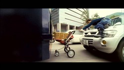 Тогда пусть будет детская коляска, зацепившаяся за мчащийся автомобиль.