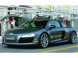 Ходовой прототип суперкара Audi R8, полностью работающего от электричества. Выпущенный ограниченной серией (1000 экземпляров) концепт-кар e-tron — электромобиль на базе модели R8 с четырьмя электродвигателями суммарной мощностью 313 лошадиных сил при невероятном крутящем моменте в 4500 Нм.  Зарядка от обычной бытовой розетки - не более 8 часов. От специальной зарядной станции с напряжением 420 вольт время зарядки сокращается до двух с половиной часов. [image]local://19990/A2895FB745BF4CEC997EF91C717325DE.gif[/image] [image]local://19990/8A254FF3EBF743879B25DCF21A38F2ED.gif[/image]