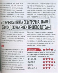 К примеру, когда вы говорите, что картинка хороша, она такова с пяти метров от экрана и в 10 см она также отличная? Влияет ли на оценку диагональ вашего телевизора или проектора? Блинк, я тоже никогда не приближаюсь к телевизору на расстояние в 10 см. Это опасно для зрения. А если без шуток, то на своей плазме (42'') я смотрю фильмы с 2,5 метров. По мне 105 см - это идеальный вариант для просмотра ТВ с такого расстояния. А принципиально искать наличие жучков, квадратов, ожогов на экране LCD-монитора (20'' WS) - я не вижу смысла, так как повторюсь, я - зритель, а не писатель дисковых рецензий. Хотя, да, - мониторное изображение - хуже.