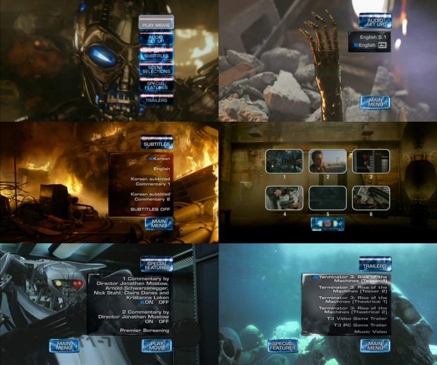 Главные меню и переходы в другие разделы анимированы точно также как на всех других DVD изданиях фильма, включая ранее выставленные скриншоты с Р5 дисков. Поэтому оставил их в окошках, кликнув на которые вы можете посмотреть большие версии.